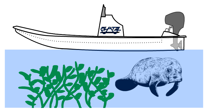 Due to the fact that our outboards are elevated so high on raised transoms and power lifts, very little of the motor or propeller protrudes below the bottom of the hulls. This extreme height makes a Flats Cat boat the least likely water craft to do harm to sub surface strata or aquatic marine life.
